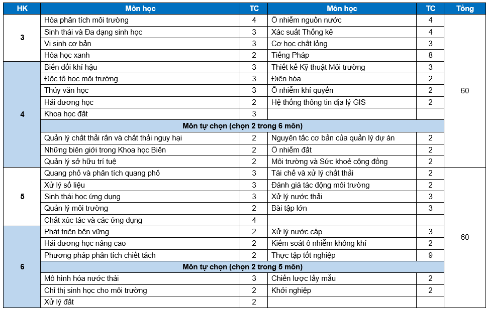 Chương trình học được thiết kế dành cho sinh viên có niềm đam mê và động lực giải quyết các vấn đề về môi trường. Thông qua chương trình, sinh viên sẽ được trang bị các kiến thức chuyên sâu về môi trường đất, nước và khí quyển, tiếp cận các thiết kế và giải pháp tiên tiến nhất trong xử lý môi trường. Ngôn ngữ học và giao tiếp trong giảng đường trong toàn bộ khóa học là Tiếng Anh. Ngoài những bài học lý thuyết khoa học trên giảng đường, sinh viên ngành Khoa học Môi trường Ứng dụng có nhiều cơ hội tiếp cận, tham gia các bài tập thực hành trong phòng thí nghiệm hoặc ngoài thực địa dưới sự hướng dẫn của các thầy cô là nhà nghiên cứu, chuyên gia về khoa học và kỹ thuật môi trường trong và ngoài nước. Hoàn thành khóa học của ngành Khoa học Môi trường Ứng dụng, sinh viên tốt nghiệp sẽ có trình độ tương đương với các tiêu chuẩn được quốc tế công nhận trong lĩnh vực nghiên cứu và khoa học ứng dụng cho các vấn đề môi trường. Bên cạnh đó, chương trình đào tạo cũng trang bị các kỹ năng mềm như tổ chức và quản lý dự án nghiên cứu khoa học công nghệ, phát triển cá nhân (trình bày và viết báo cáo khoa học, kỹ năng trình bày/giao tiếp), kỹ năng làm việc theo nhóm, khơi dậy các sáng tạo và tinh thần khởi nghiệp; và nâng cao trình độ ngoại ngữ cả Tiếng Anh và tiếng Pháp, .